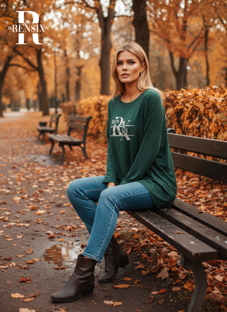Viszkóz anyagból készült kerek nyakú, elől Rensix nyomatos, bő tunika.