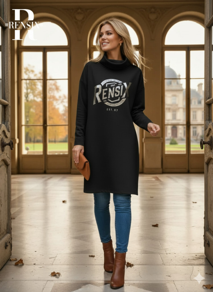Rensix Tira kámzsa nyakú pulóver, fekete ezüst feliratos