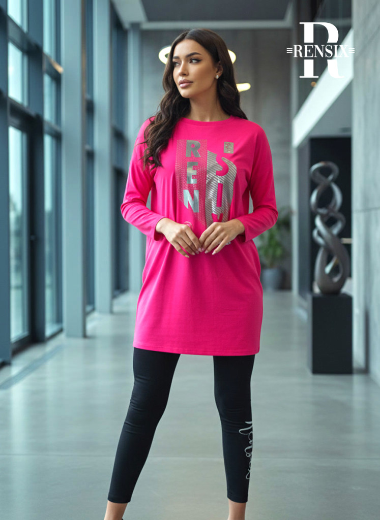 Elasztikus pamut viszkózból készült, elől nagy Rensix nyomatos, bő tunika.