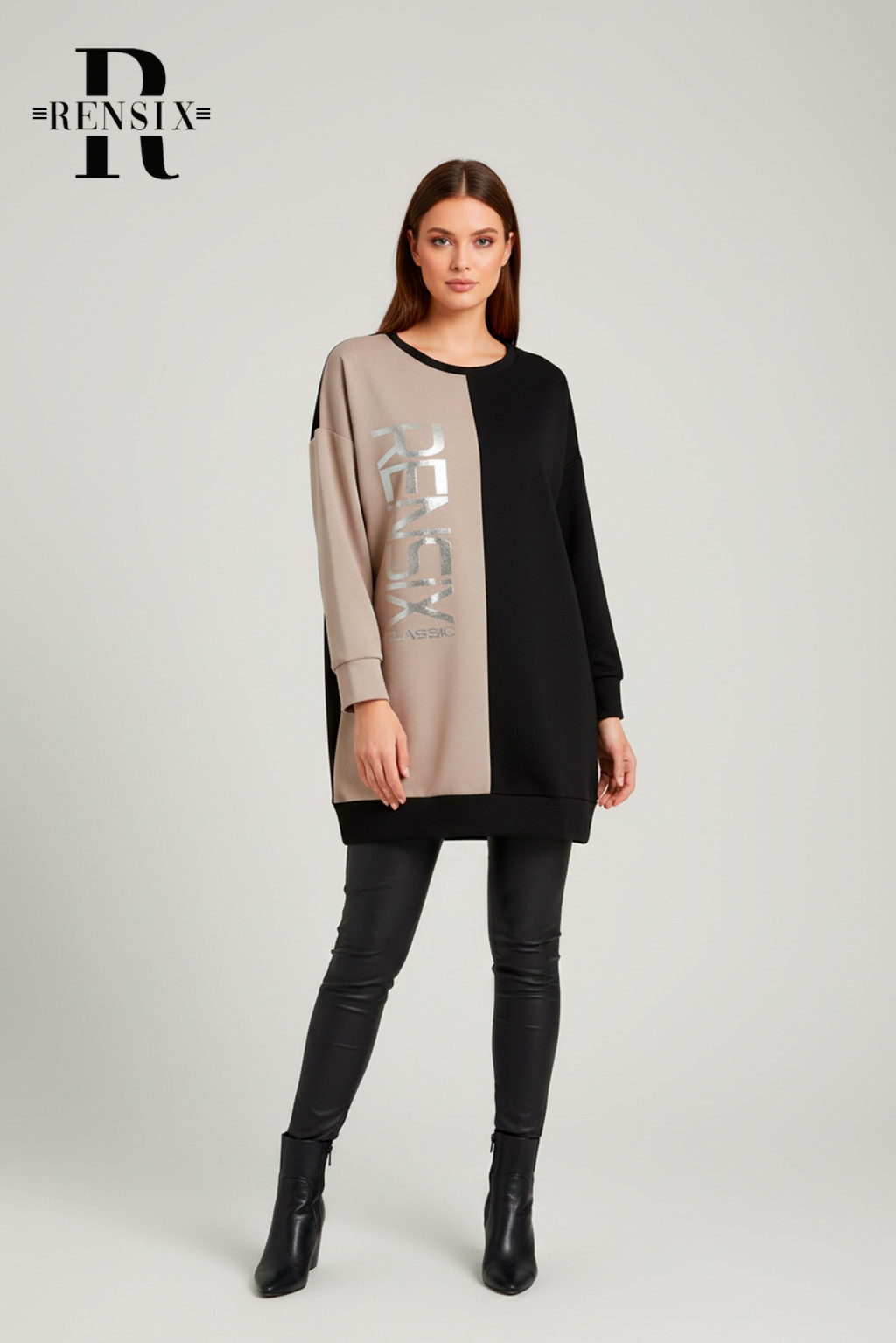 Rensix Double passzés aljú pulóver, bézs-fekete