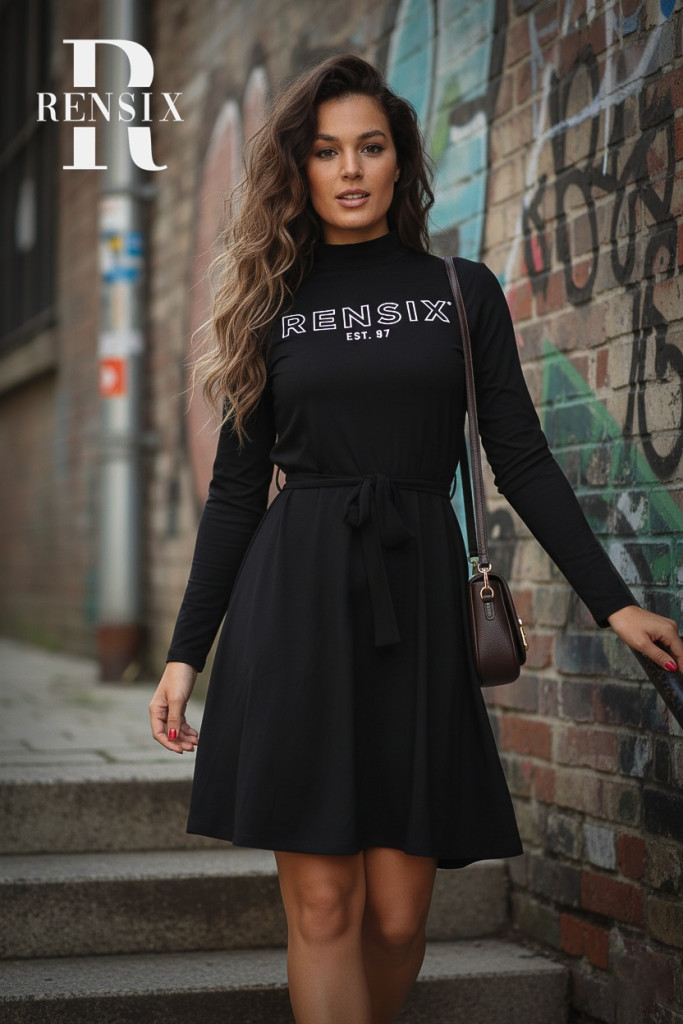Nőies, kényelmes és stílusos darab, amely kiemeli az alakot a derékon megkötős fazonnal. A prémium minőségű, rugalmas anyag biztosítja a komfortot, míg az A-vonalú szabás minden testalkaton előnyös. Magyar gyártású, egyedi Rensix design, amely tökéletes választás hétköznapokra és különleges alkalmakra is.
