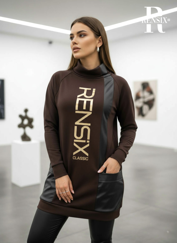 Rensix Kellog bőrbetétes pulóver, csokibarna