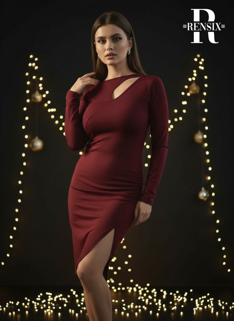 Rensix Kleopátra oldalán húzott ruha, burgundi