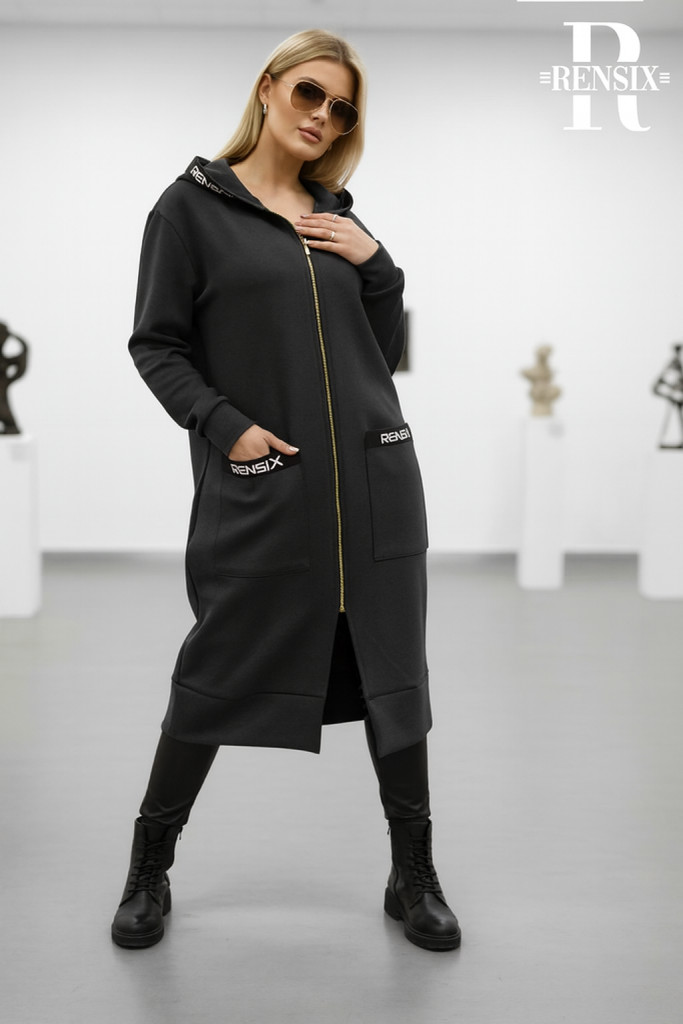Rensix Navas arany zippes hosszú kardigán, sötétbarna