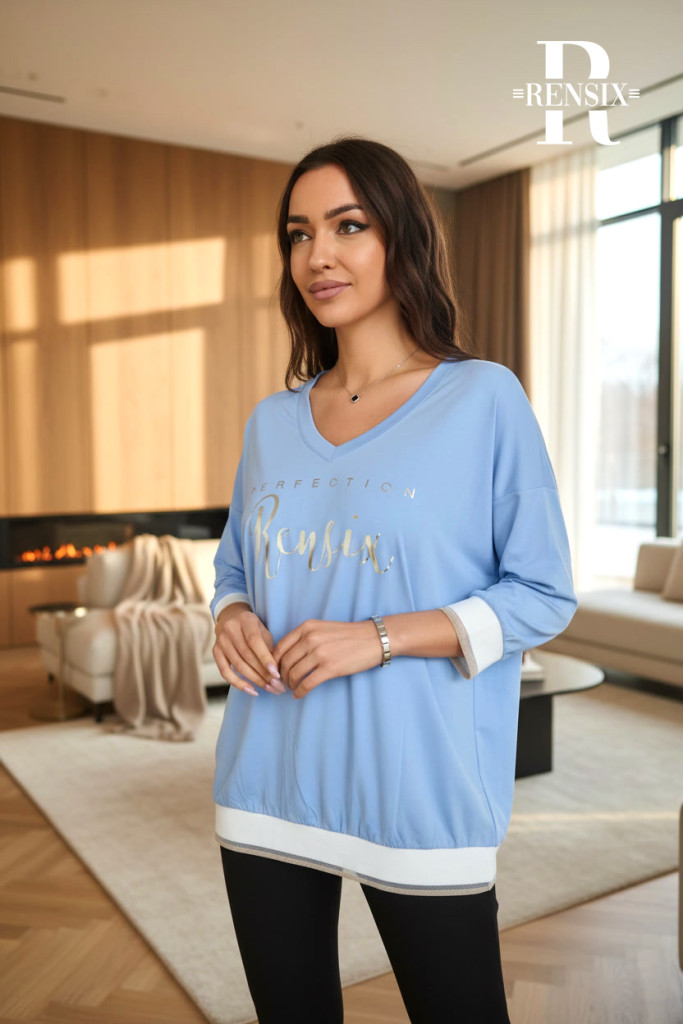 Pamut viszkózból készült, passzés aljú és ujjú, V nyakú tunika.