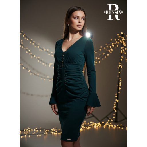 Rensix Tölcsér ujjú ruha, smaragdzöld