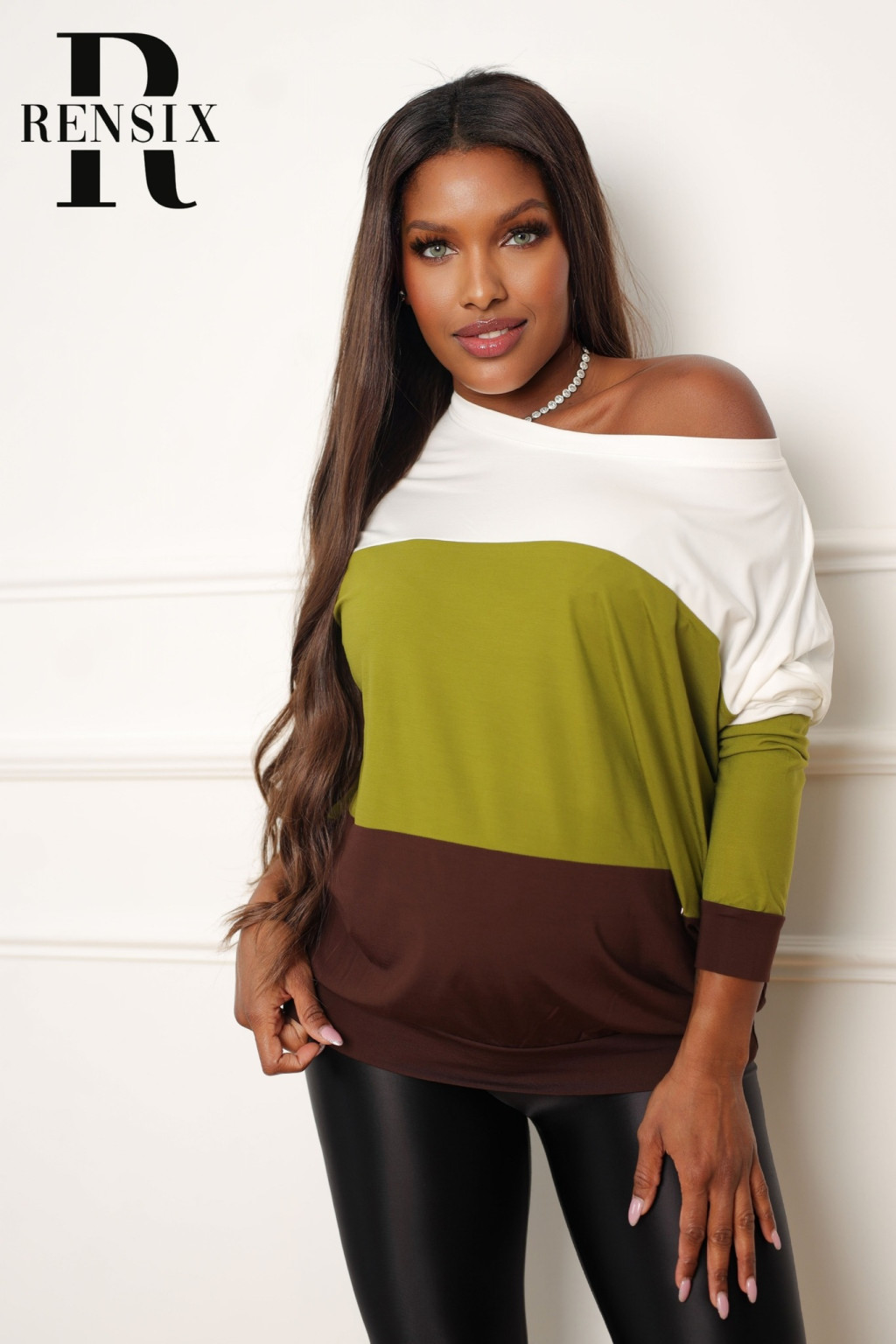 Rensix Trio passzés aljú felső, fehér-zöld-csokibarna