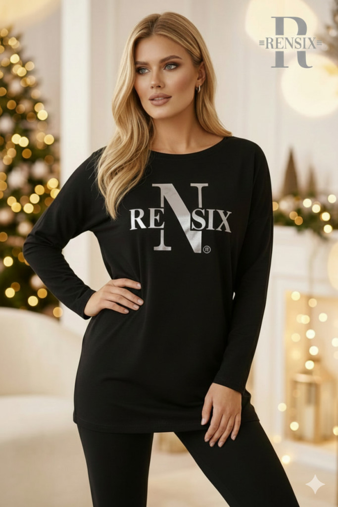 Elasztikus pamut viszkózból készült hosszú ujjú, mellnél nyomatos bő tunika.