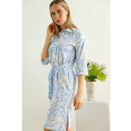 Poliészter és viszkóz anyag keverékéből készült, öves, egyenes fazonú alkalmi ruha.