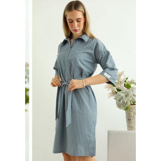 A klasszikus csíkos minta és a derékhangsúlyos szabás együttese egy nőies, mégis kényelmes ruhadarabot eredményez, amelyet könnyedén viselhetsz bármilyen alkalomra.