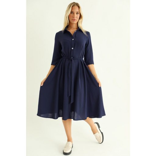 Galléros nyakú, derék részig gombos, öves, A vonalú ingruha.