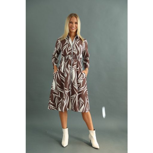 Elől végig zippes, gumis derekú, oldalán zsebes ingruha.