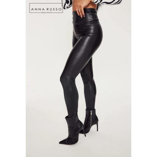 Anna Russo magas derekú alakformáló műbőr nadrág, fekete